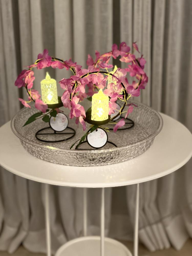 عززي أناقة منزلك مع حامل الشموع الرائع هذا. مصنوع من المعدن عالي الجودة، ومصمم لعرض الشموع الصغيرة بشكل جميل، يتميز بتصميم أنيق يضفي توهجًا دافئًا وجذابًا في أي غرفة مما يجعله إضافة مذهلة إلى ديكورك.