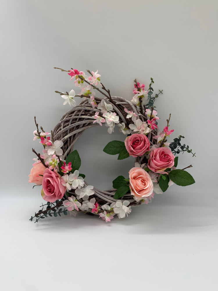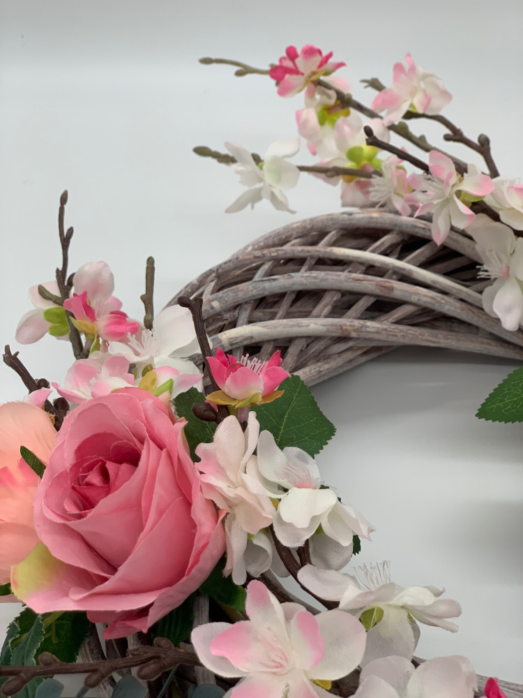 اكليل خيزران رمادي سميك مزيّن بالورد الجوري